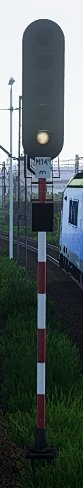 Ja bardziej mam na myśli zmianę kolorów. Zauważyłem, że z bliska czerwone wygląda jak pomarańczowe. Drugie zdjęcie pokazuje dwa semafory nadające sygnał S1, tylko stojące w różnej odległości. Ze wzmocnieniem kolorów (wielkością kolorowego "kółka" nie można przesadzać, gdyż będzie to wyglądać bardzo nierealnie.