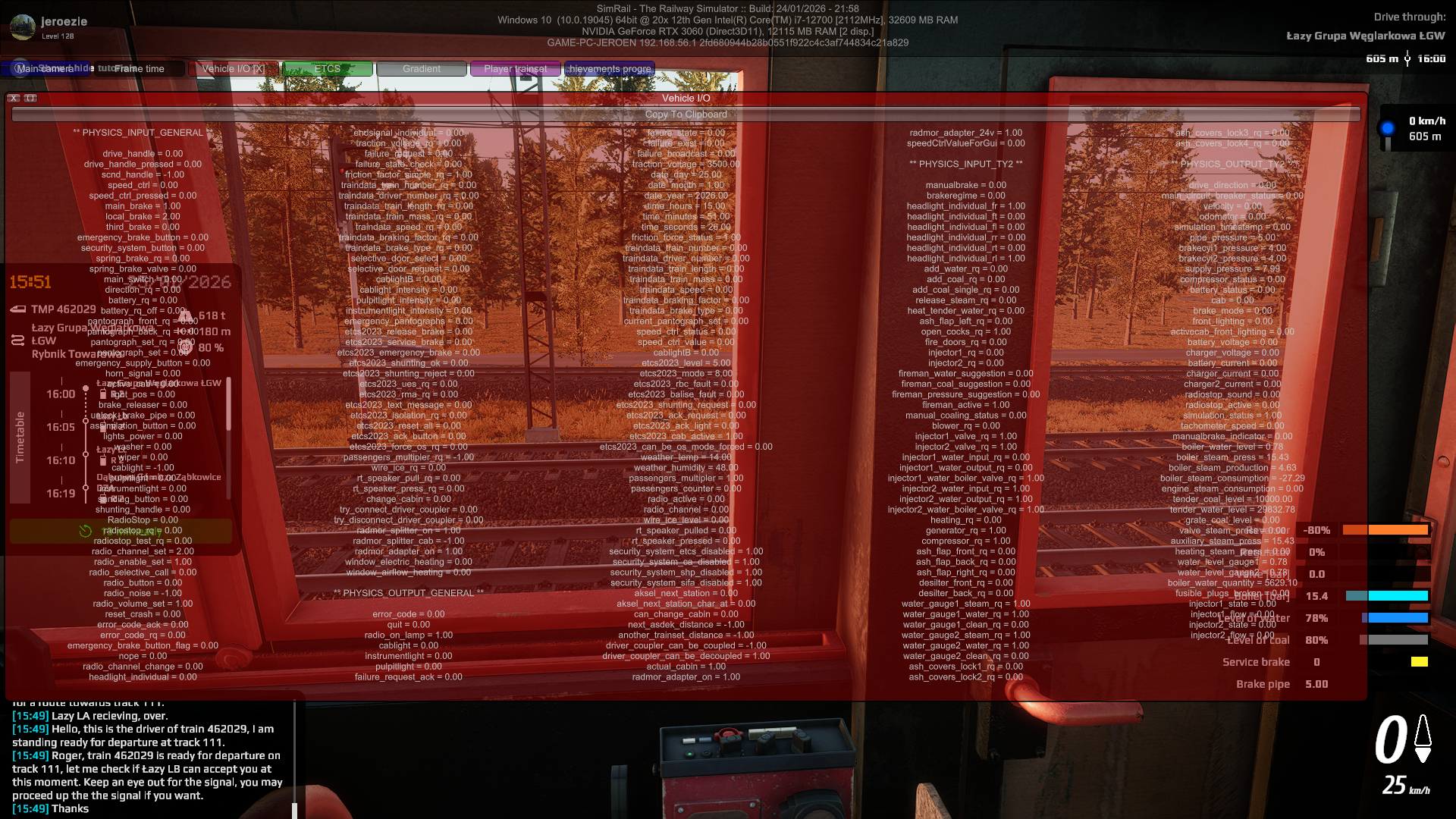 While standing with a single loco in the deport, I was unable to reproduce the bug. But it got interesting as soon as I coupled up the the wagons after shunting: when I got back in the cab after coupling, the radio green light was unlit, before getting out of the cab, it was lit up. Setting the reverser forwards or backwards had no effect on the radio light. Changing the radio signal splitter cabin from A to B got the radio working again. I am unsure, what data vale, you are referring to. If you need more information from me, please describe it better. I will attach entire Vehicle I/O and log file, as after coupling, where the radio only works with the spiller on B cab. If I can help with gathering more info, please let me know, I am happy to help. vehicle IO after coupling.txt SimRail_log_2026-01-28_18-26-48.txt