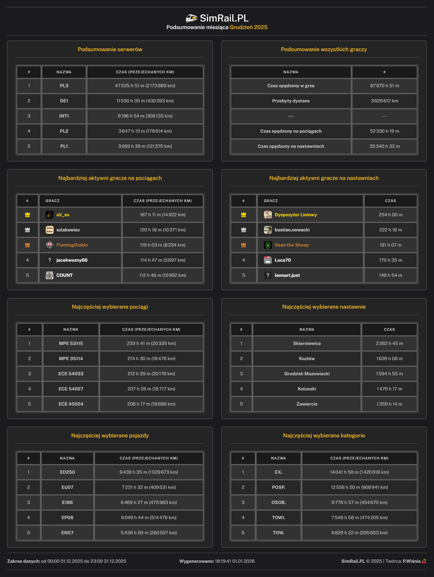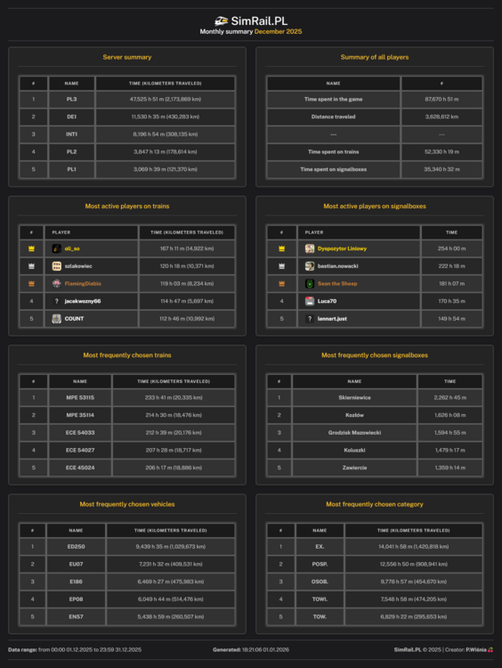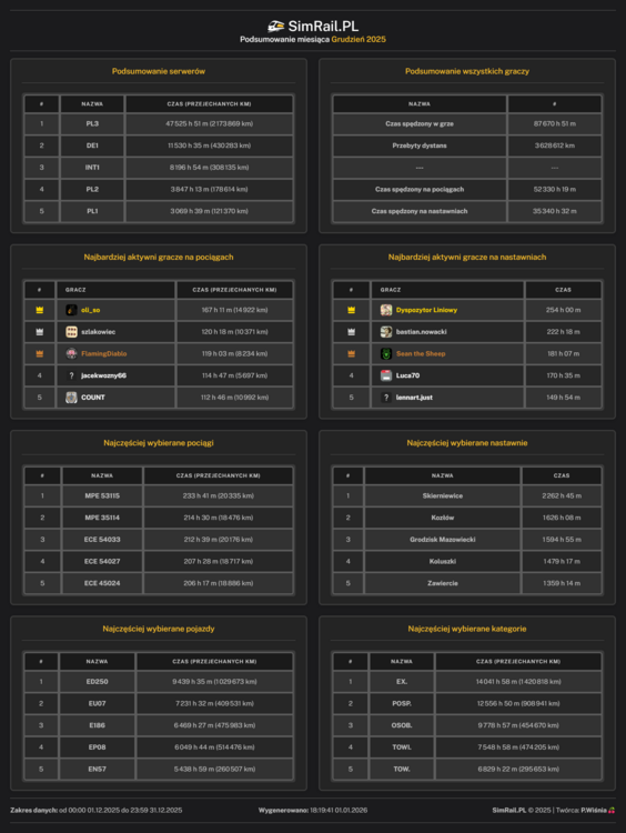 Okay. I tried playing again. First, Dragon. I got stuck in Łazy. Then two attempts with the forum version failed. I chose EU07 Cargounit. I had problems connecting the wagons in Łazy. The scenario froze. Then another attempt with the Steam scenario. Also EU07 Cargounit. And it's fine. I reached Sosnowiec. I paused the game there. The scenario works 🙂 Very cool AI movement. Lots of cargo options to choose from. Very cool scenario. As for the problems I had, I don't know if it was my computer's fault or that I was traveling late once and the AI movement might have froze. Ok. Spróbowałem zagrać ponownie. Najpierw Dragon. Utknąłem w Łazach. Potem dwie próby wersja z forum nieudane. Wybrałem EU07 Cargounit. Problemy przed podpięciem wagonów w Ła. Zawieszał się scenariusz. Później kolejna próba z steam scenariusz. Również EU07 Cargounit. I jest dobrze. Dojechałem do Sosnowca. Tam przerwałem grę. Scenariusz działa:) Bardzo fajny ruch AI. Dużo wersji ładunku do wyboru. Bardzo fajny scenariusz. A problemy jakie miałem to nie wiem czy to nie wina komputera mojego, albo tego że jechałem opóźniony raz i mógł ruch AI zawiesić się.