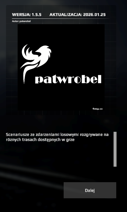 Nowa wersja 1.5.5 (link do ręcznego pobrania: 44_patwrobel.7z) -poprawka w Strzemieszycach z manewrowym za Cargo -poprawka -1000pkt za rozkład Służbowy ŁKA -dodatkowe info jak znaleźć skład ŁKA PS. W poprzedniej wersji możliwe że w ręcznym linku pomyliłem się i opublikowałem bez zmian kod - przepraszam. PS2. Sprawdziłem warsztat odświeża kod (pobiera najnowszy) tylko na wejściu do Steam - jak widzicie na forum że jest nowa wersja trzeba zamknąć Steam (prawym na ikonę i wyjdź) i otworzyć ponownie. Proszę zwracać uwagę czy wersja o której piszę pokrywa się u Was widać to w tym miejscu: