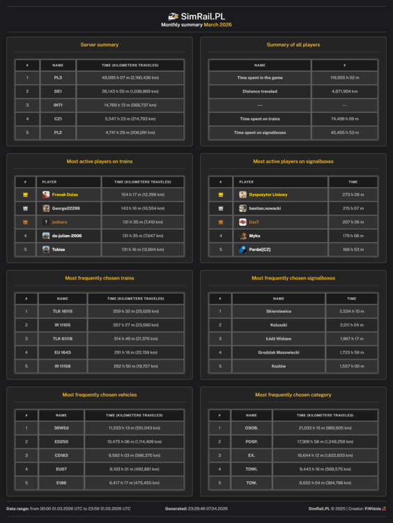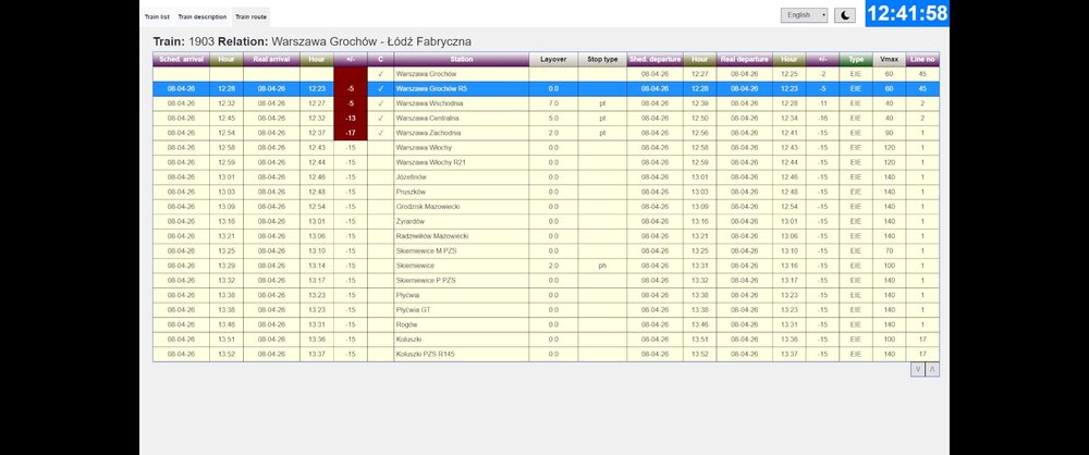 Nowa wersja 1.6.8 (link do ręcznego pobrania: 44_patwrobel.7z) -dopasowanie do poprawek gry SimRail -poprawka w Łódź Widzew (wjazd na tor 7) -zwiększenie prędkości do 120km/h EIP podczas wyprzedzania DZ-ŁC Jednak były zmiany w silniku SimRail podczas ostatniej łatki: VDReponseCode zmiana na VDResponseCode, niby drobne a jednak przestało działać