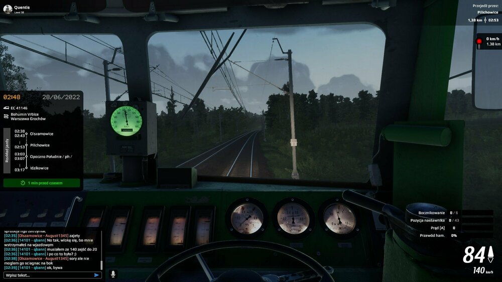 Witam, podczas jazdy lokomotywą typu 4E (EU07-083), mając nastawnik jazdy na pozycji "0", lampka sygnalizacyjna na pulpicie wskazuje nam jazdę na oporach rozruchowych. Dopiero wejście na pozycję szeregową lub równoległą, wygasza tą lampkę. Nie jest to zbyt wielki problem, ale podczas jazdy nocą bardzo kłuje w oczy. Nie wiem jeszcze, jak sytuacja wygląda w innej EU07. W załączniku log, oraz screen. Pozdrawiam, Quentis SimRail_log_2023-02-15_12-52-47.txt
