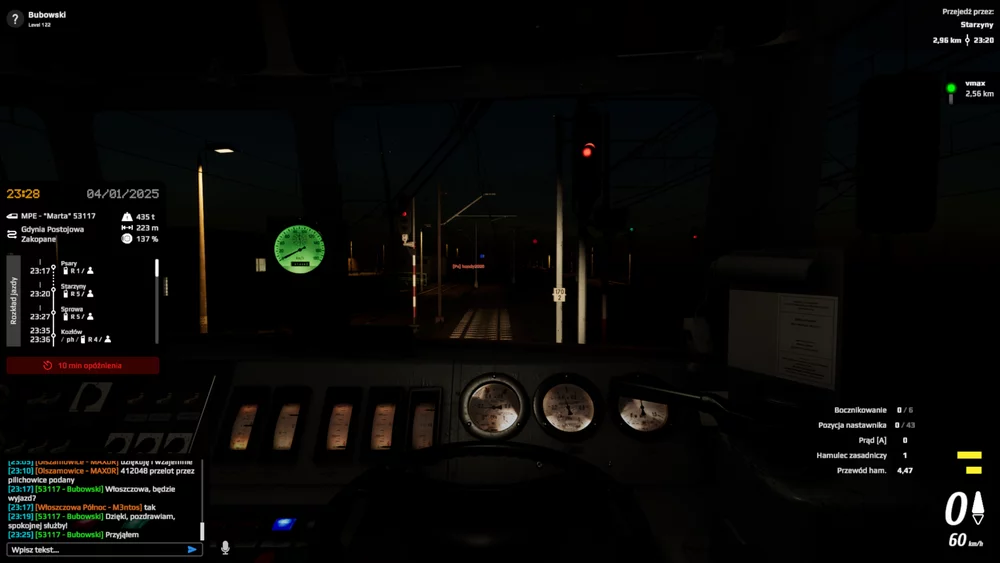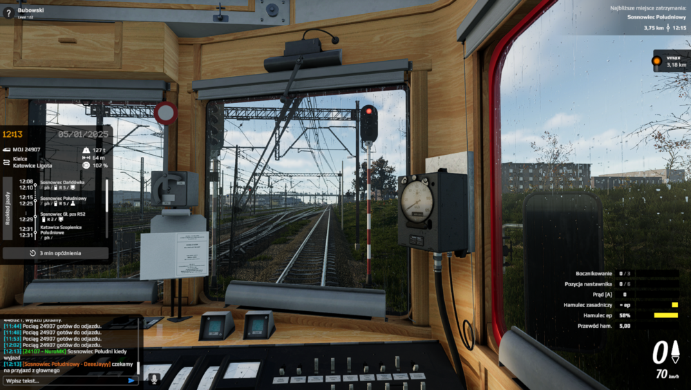 2. Z początku potraktowałem to jako lagi na serwerze lub zwykły error, ale problem powtarza się co jakiś czas. Mianowicie, na HUDzie zdarzają się błędne informacje lub freezing semafora. Trzeba dobrze wytężyć wzrok aby obserwować fizyczne semafory na szlaku i ich nie przejechać bo informacja podawana na ekranie zdarza się, że jest nieprawidłowa. Nie ma konkretnego składu na którym występuje problem. Jest on losowy. Wrzucam zdjęcie w załączniku najnowszego przypadku oraz plik wideo sprzed kilku dni. Ale jest tego plus - trzeba trenować refleks i w porę włączyć BOTa, który ma drogę hamowania 0 metrów... 😉 20241227-1518-16.0971916.mp4 20241221-1115-18.7489666.mp4 20241221-1121-35.0726428.mp4