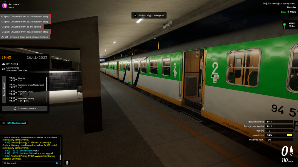 W dniu dzisiejszym na pociągu RE1 91974 na przystanku Piastów po otwarciu drzwi zastałem komunikaty "Otwarcie drzwi poza obszarem stacji". Nie było by w tym nic dziwnego, gdyby nie fakt, że zatrzymałem się prawidłowo równo z wiatą na peronie, z resztą widać nawet na załączonym zrzucie, że UI wyświetla komunikat, że "Można się już zatrzymać".