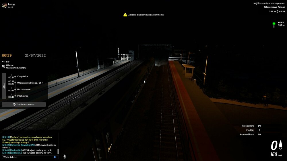 Serwer PL3, 18/01/2023, 11:29 czasu polskiego. Dyżurny AI we Włoszczowej Północ postawił mi przelot, mimo planowego postoju pociągu 4144. SimRail_log_2023-01-18_09-42-48.zip