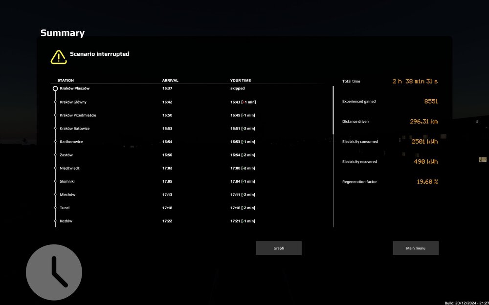 -Starting in Krakow (started waiting in front of a red signal between Plaszow and Krakow Glowny), first problem was "Driving through the station without stopping: Krakow Plaszow". No wonder: Plaszow is not included in the game. I guess server error? However, 1000 points deducted to my run...