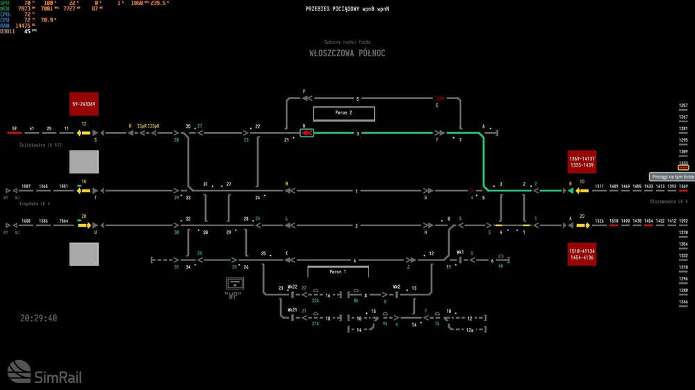 WItam. Temat spadku FPS jest znany, jednak dziś zdarzył mi się nadzwyczajny przypadek, mianowicie pora była wieczorowa w symulatorze, także nie myślę żeby tutaj chodziło o wzmożone cieniowanie jak to bywa przy zachodzie słońca, oraz do tego spadki FPS z 45-55 były aż do 8-10 klatek, co wcześniej mi się nie zdarzało i spadki te trwały nadzwyczaj długo. Rozpoczęły się przy wjeździe do Łazy ŁA z (ok 21.10 z chwilowymi poprawami płynności, następnie na wylocie z Łazy ŁC na wzniesionym łuku w stronę DG Ząbkowice spadek FPS również był bardzo długi i przewlekły (ok 21.16). Załączam logi do analizy. Podczas przejazdu Przez DG Zabkowice mialem juz około 40 FPS. SimRail_log_2023-03-08_20-52-58.txt