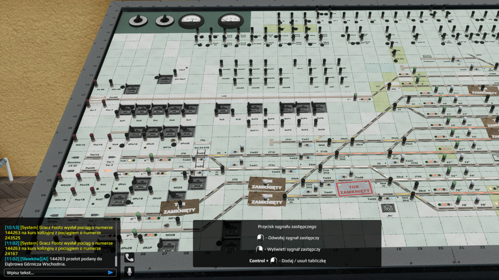 Witam Podczas dyżuru na posterunku Bukowno naciskając przycisk semafora F1, pomimo niespełnionych warunków do utwierdzenia przebiegu (brak wolnego szlaku), dwukrotnie został podany wyjazd na Sygnał Zastępczy, uzupełniony komunikatem o wysłaniem pociągu na kurs kolizyjny. SimRail_log_2024-04-28_10-42-06.txt