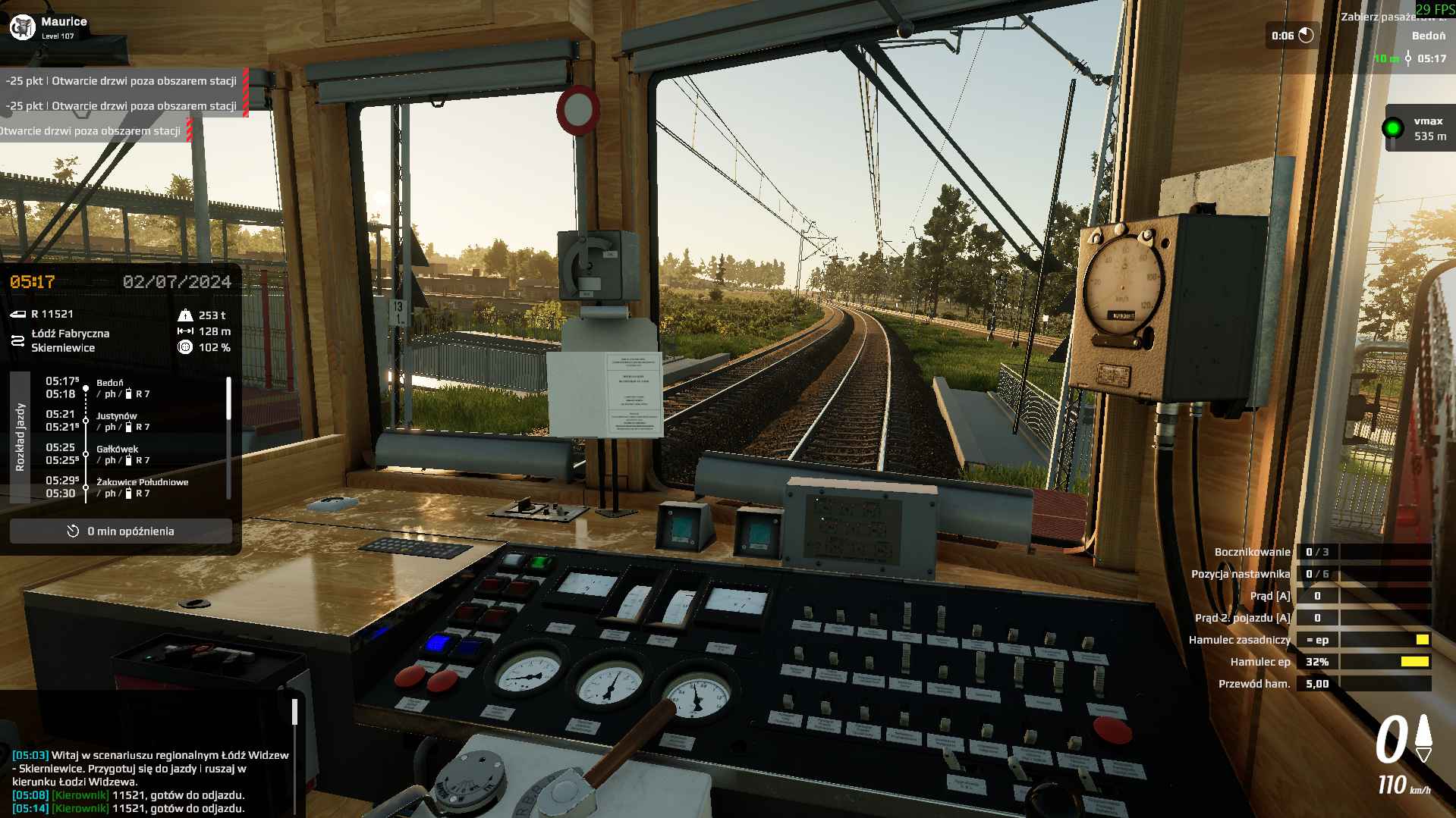 Testowałem drugi raz i moja wina ze nie przełączyłem na neutralny bieg w EU07. Wszystko działa jak powinno. Po próbie hamulca mam czekać na pasażera który dojedzie do Sławkowa wtedy poda mi przebieg, jednak sie to nie stało bo czekałem 15min i nic. SimRail_log_2025-10-29_15-08-34.txt