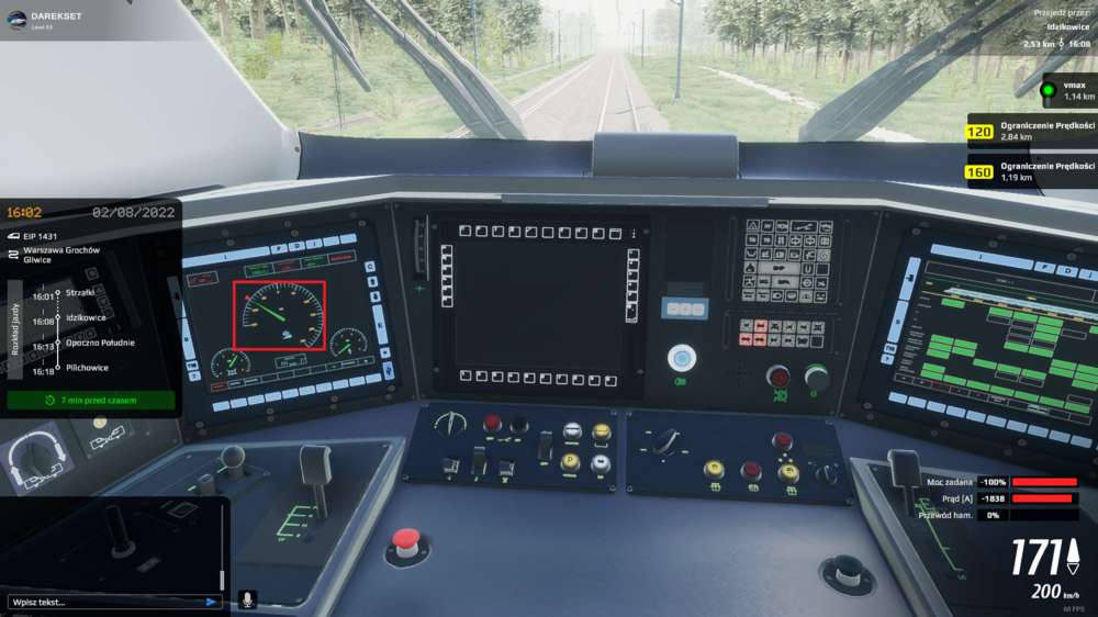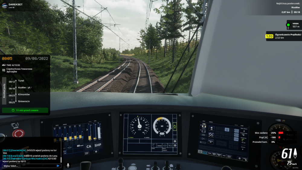 Za stacją Tunel po wyjeździe z tunelu w kierunku Sędziszowa tory wspinają się na dość spore wzniesienie i tu składy powinny przy zadanej prędkości na tempomacie zwiększać moc, natomiast dzieję się dokładnie odwrotnie aby utrzymać prędkość zadaną hamują i to dość mocno. Możliwe, że jest odwrócone poziomowanie terenu w scenariuszach. Screen na potwierdzenie takiej sytuacji.