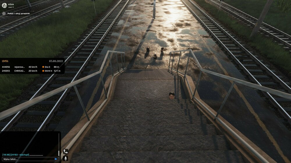 To samo dzisiaj (po aktualizacji) w Łazach. Towarowy pociąg 644050 został skierowany na boczny tor. Czekał na zielone światło. Maszynista (gracz) przejechał na czerwonym świetle, po czym pociąg zniknął. Nie było go na liście aktywnych pociągów ani fizycznie na mapie. Jednak na konsoli w dalszym ciągu był widoczny. -