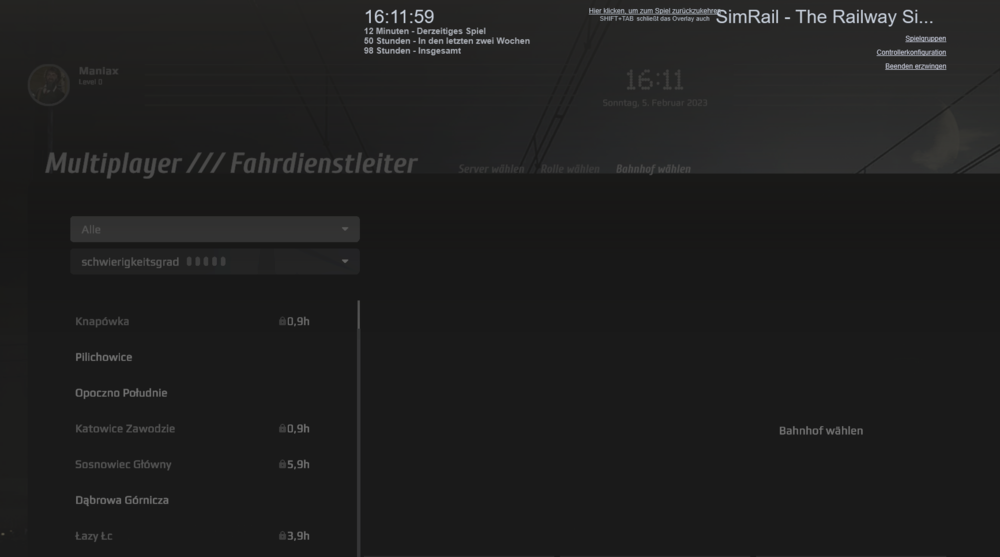 4. After 3 hours of not playing Simrail ( didn't know, that this is even possible ), my Level set back from 31 to 0, and my playtime as dispatcher is back to 0. I will attach two logs, one log with level 31 and a log at level 0, if it helps. Im not sure if this is a bug or maybe i accidently resetted my level by myself. Restarting Steam and Simrail doesnt helped. EDIT: Now 3 hours later without playing, i'm level 31 again with no reason. SimRail_log_2023-02-05_12-27-43.txt SimRail_log_2023-02-05_15-59-36.txt