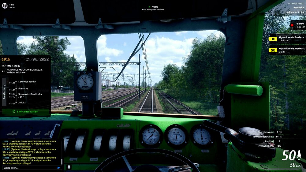 11. Witam Pierwsze zdjęcie przedstawia nastawnię, w tym przypadku Zawiercie i HUD-y, które zasłaniają to co ważne i najważniejsze. Czy nie możecie zrobić tak, aby każdy z dyżurnych sam sobie poprzesuwał je tak żeby nie zasłaniały niczego? Aby można było je za pomocą myszki poprzesuwać tam gdzie jest wolne miejsce? Drugie zdjęcie przedstawia HUD-y w lokomotywie, które także zasłaniają to czego nie powinny zasłaniać, też można je zrobić tak żeby można je było samemu poprzeciągać w inne miejsca, a w dodatku te po prawej, które informują o prędkościach i ograniczeniach, mogą być znacznie mniejsze. Po co takie duże? Wystarczy tam cyfra 20/h. i za ile metrów 600m. Po co cała nazwa tej informacji? " ograniczenie prędkości" Im mniej zasłania tym lepiej. I jeszcze kursor myszki powinien wygaszać się po 3 sek. aby się nie pałętał po ekranie, a po ruszeniu myszką powinien się pojawić ponownie.