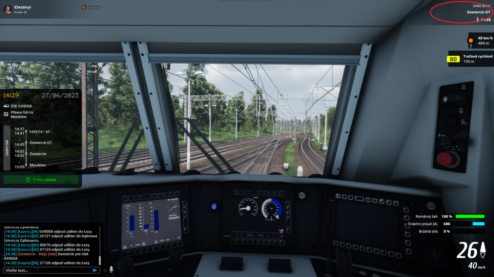 On train 649068 when travelling from Lazy to Lazy La with approx. 1.5 km to Lazy La, the distance is skipped to Zawiercie. I have seen this on several trains in this area. On the way from Zawiercie to Miszków the distance indicator is not visible at all, it is visible again about 4km before Miszków.