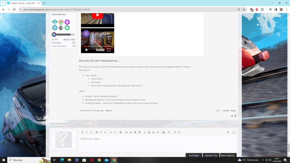 11. Nie chcę być złośliwy, ale im częściej czytam Twoje wpisy, tym trudniej mi Ciebie zrozumieć. A gram w TSW już 4 lata. W TSW nie ma jeżdżenia co godzinę, chyba, że wynika to z realnego rozkładu jazdy. Czyli najczęściej są to podmiejskie osobowe na niemieckich trasach.