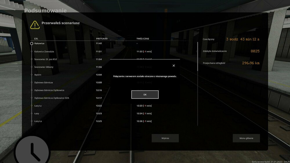 W Katowicach - Zawodziu gra nie wykryła zatrzymania przy krawędzi peronu. Dn. 21.01.2023 serwer: PL3