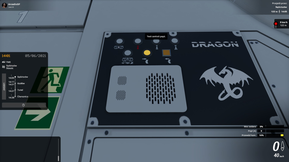 9. W Warszawie Centralnej, prowadząc ED250, zostałem wpuszczony na tor, na którym stał już inny skład. Chyba tylko dzięki temu, że była to misja singleplayer, stojący skład nie był obiektem fizycznym, więc mogłem stanąć moim składem w tym stojącym składzie i bez problemów ukończyć misję. Ale wyobraźcie sobie moją panikę i próbę zatrzymania się przed tym składem. 🤣 Wyjazd do Warszawy Wschodniej odbył się na węch. 😁 Innych zrzutów na udokumentowanie nie udało mi się wykonać. Nie umiałem zewnętrznej kamery ustawić by to ładnie uchwycić.