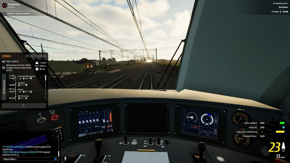 Przejmując dragona w Grodzisku Mazowieckim stałem na boku. Po ustabilizowaniu się sytuacji ruchowej został wyświetlony sygnał S10a (ten 60km/h, następny vmax) ruszyłem więc, lecz w dragonie nie działał wyświetlacz DMI od ETCS, nawet po minięciu wskaźnika W ETCS 8 "wjazd w obszar ETCS poziomu 2". W dodatku HUD cały czas wskazywał dozwoloną prędkość 13 km/h EDIT: zrobiłem weryfikację plików na steamie i nie pokazało żadnego błędu w sprawdzanych plikach SimRail_log_2024-12-18_23-49-02.txt