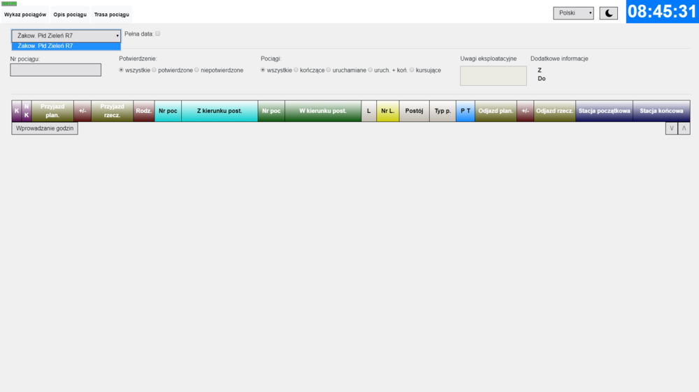 Wchodząc na dyżurkę w Żakowicach Południowych, nie ma rozkładów dla pociągów. Nie wiadomo gdzie jaki pociąg kierować. Brak możliwości wyboru innej zakładki niż ta z załącznika.