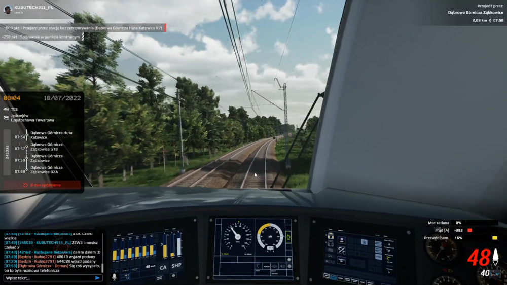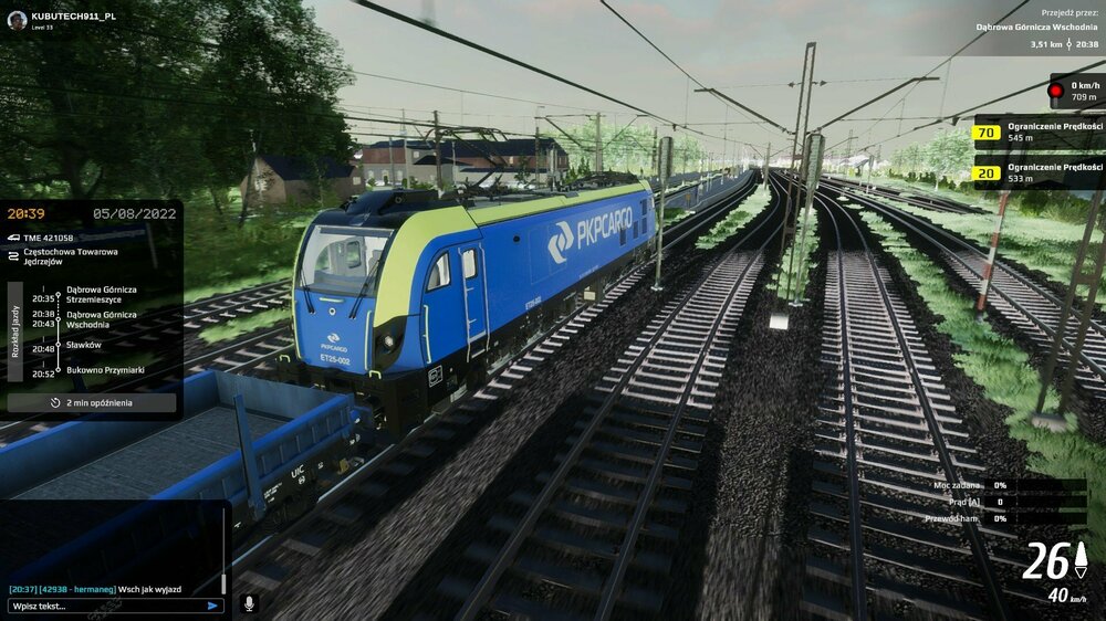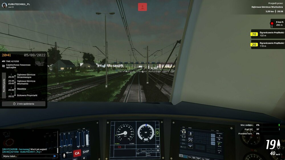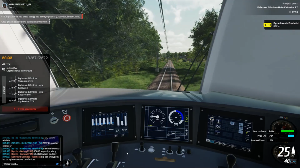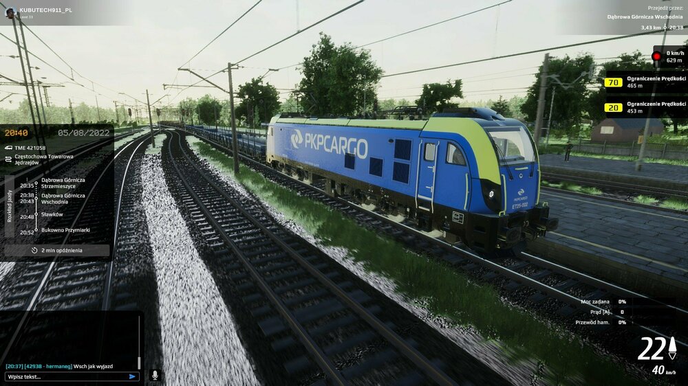 Serwer: PL4 Scenariusz/numer pociągu: 242201 Miejsce: Wjazd do stacji Dąbrowa Górnicza - semafor A Problem: Ograniczenie prędkości do 100 km/h, które obowiązuje od tablic ustawionych przed semaforem wjazdowym A do stacji Dąbrowa Górnicza, na HUD pokazywane jest jako obowiązujące od punktu znajdującego się w odległości 1.7 km (w kierunku Będzina)SimRail_log_2023-01-29_00-50-28.txt