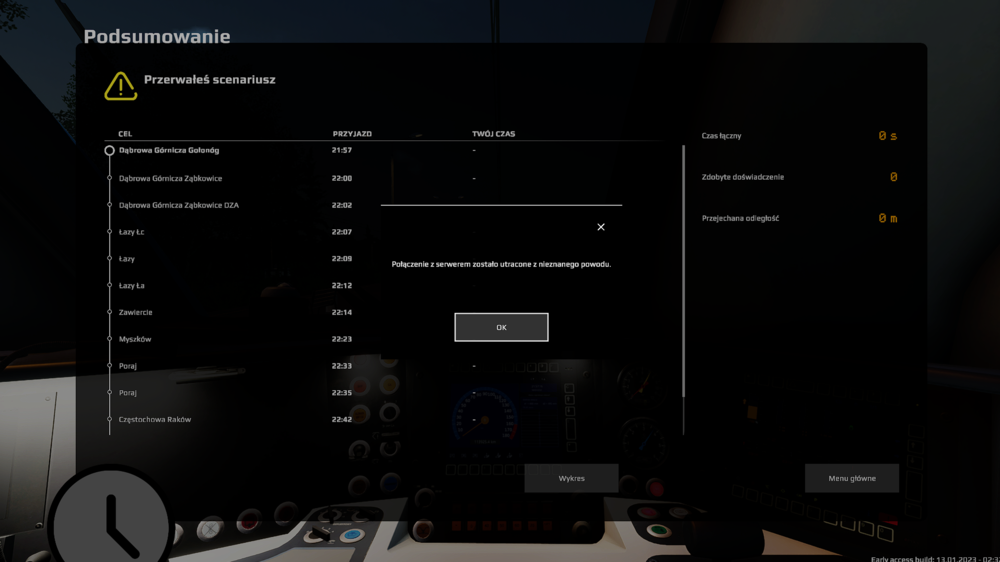 Witam piszę ten problem ponieważ już od kilku godzin posiadam go i probowałem wiele rzeczy aby to naprawic. Przejdzmy do tematu, od kilku godzin gdy probuje wejsc na multiplayer zrespic pociag to nie pokazuje mi normalnego czasu trwania tylko np ~01:18 gdy sie respie odrazu mnie wywala z błędem do menu głównego i zakończonym kursem. Chcialbym prosić o pomoc bo zależy mi na tym aby pograć na multi.