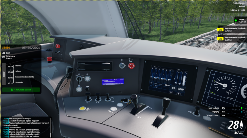 Starałem się znaleźć w zasobach Forum to, czego dotyczy ten temat, czy ktoś już powyższej kwestii nie poruszył, lecz nie znalazłem. Niedawno ukończyłem scenariusz (tutorial) na E186. Jak wiadomo, programator/programatory świateł w tej lokomotywie znajdują się na tylnym panelu, za siedzeniem maszynisty. W scenariuszu występuje jazda po torze lewym, co powoduje, że trzeba wstać z fotela i przełączyć światła na odpowiednią pozycję (czerwone lewe). W tym czasie (wystarczą w sumie ułamki sekund) można np. przekroczyć prędkość. To samo tyczy się jazdy manewrowej, itp. W ED250 mamy podobną sytuację. W związku z tym, mam pytanie i prośbę, czy można byłoby dodać do mapowania przycisków programatory świateł? Przycisk ogólny odpowiadający za zapalanie światła nie działa w ten sposób, stąd też moja prośba. Jeśli to możliwe, czy można byłoby również dodać mały HUD wyświetlający się równocześnie, gdy przełączalibyśmy światła za pomocą kombinacji na klawiaturze, aby widzieć, na jakiej pozycji świateł aktualnie znajdują się przełączniki w programatorach? Zdaję sobie sprawę, że w rzeczywistości maszynista być może wstaje z fotela, aby przełączyć w danej sytuacji odpowiednio światła, ale sądzę, że rozwiązanie to znacznie (przynajmniej niektórym) ułatwiłoby jazdę. Przy okazji, aby nie zakładać nowego tematu, chciałbym zapytać, czy byłaby możliwość wprowadzenia np. większej liczby przejazdów na E186? Z góry dzięki.
