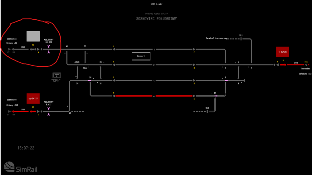 2. Dzisiaj jak prowadziłem ruch na stacji Grodzisk Mazowiecki zauważyłem błąd w planie świetlnym. Otóż odcinki torowe i zwrotnicowe mają błędną kolejność zajmowania. Wszystko dzieje się za odcinkiem 3c, a kończy się na rozjeździe 59. Załączam film pokazowy.