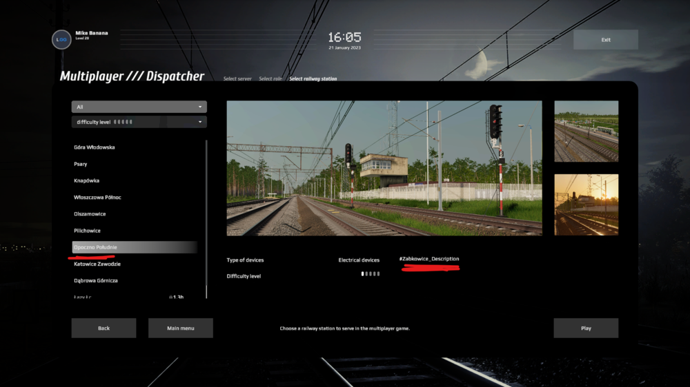 Hello there, I have encountered a bug while choosing a station to dispatch. At Opozno Południe, the station description seems to be pointing to Zabkowice station description.