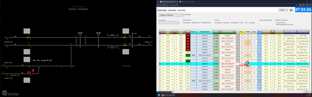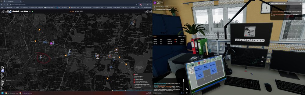 W dniu 3.08.2025 na serwerach Pl2 i PL1 zaobserwowałem następujący problem, brak możliwości utwierdzania przebiegu w kierunku Fabrycznej z dowolnego semafora wyjazdowego. Brak możliwości utwierdzenia z Łódź Chojny na dowolny peron ! Co oznacza zmuszenie do podawania SZ ( dobrze że to chociaż działało ) Oraz dziwna sytuacja, zapowiedź pociągu towarowego ze stacji Łudź Chojny. Nie wiem co się odwaliło ale było ok i nagle jest problem. Wygląda tak jakby większa część lewej strony pulpitu praktycznie nie działała poprawnie. Fotka przedstawia sytuację z zapowiedzią i jest ustawiony przebieg dla pociągu w kierunku Gałkówek na szczęście w tym kierunku można utwierdzać przebiegi z dowolnego semafora wyjazdowego oraz można utwierdzać przebiegi z semafora wjazdowego z Łodzi Fabrycznej.
