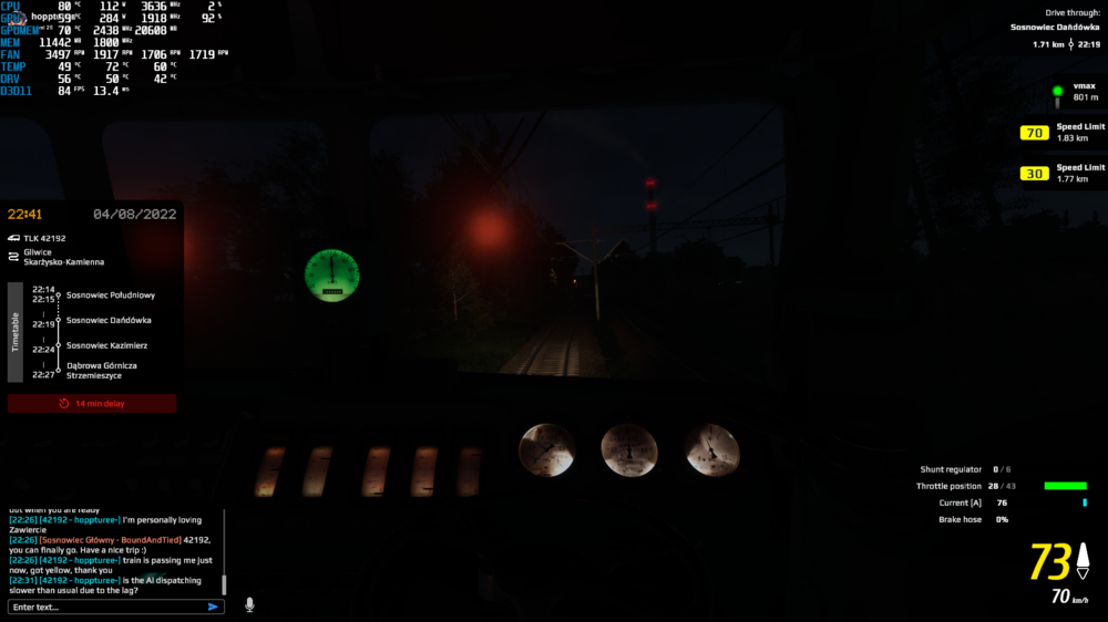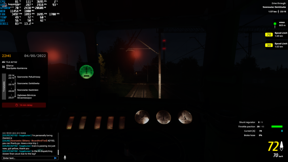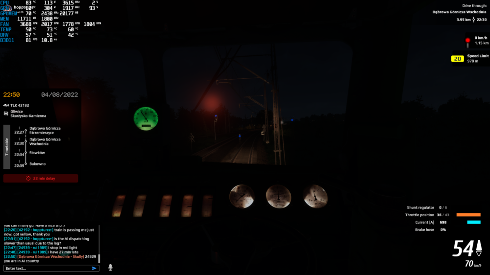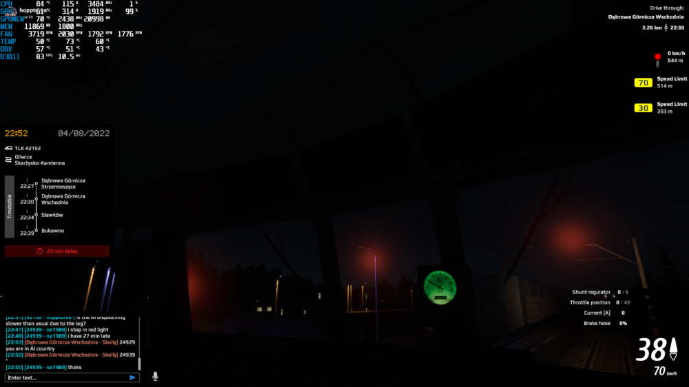 When trying to speak as Zawiercie to Gora Wlodowska, the chat sometimes doesn't send my messages even though the other station is player controlled. I am not sure if another player joined in the meantime, though. SimRail_log_2023-02-04_20-36-24.txt
