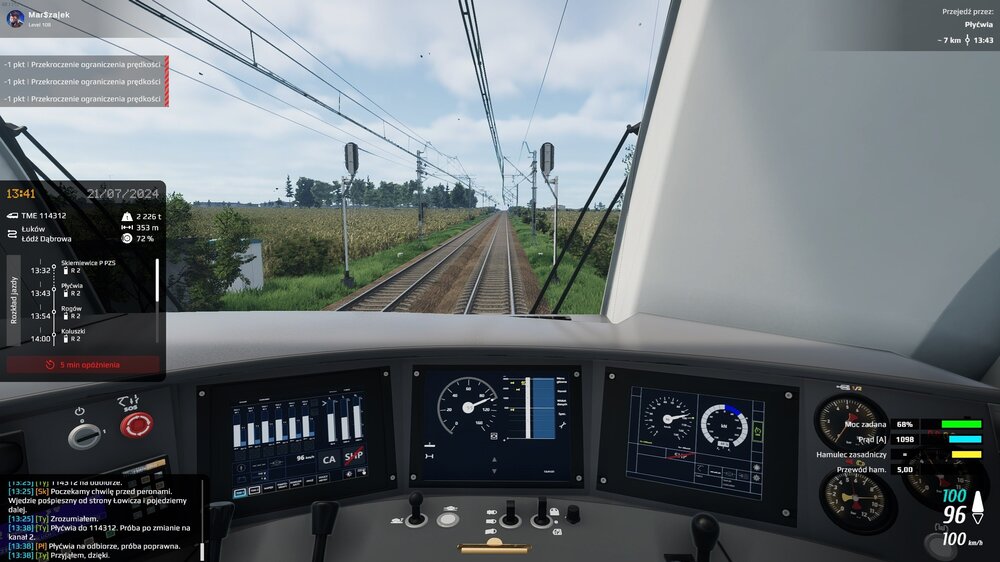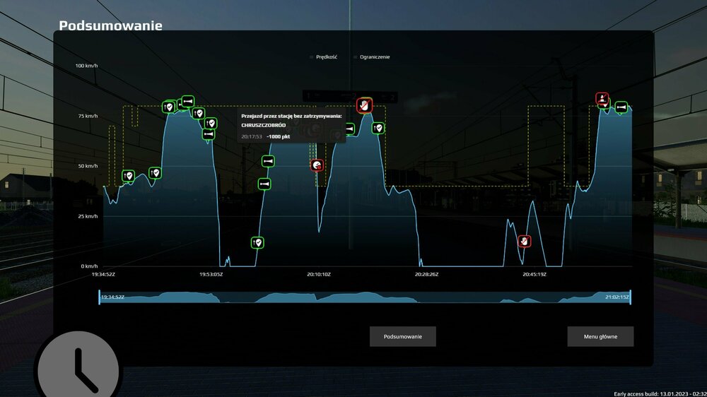 Miałem kilka krotnie taką sytuację że biorąc pociąg pasażerski od bota na dzień dobry dostawałem -1000 pkt za nie zatrzymanie się na stacji która już była za mną w momencie dołączenia do gry. Oraz z przed chwili jechałem TME od Katowic do Zawiercia i podczas całego przejazdu otrzymałem 2 razy - 1000 pk raz za przystanek Chruszczobród a raz przejeżdżając obok semafora wjazdowego do Zawiercia za Zawiercie GT przejazd bez zatrzymania . Ogólnie moim zdaniem jest coś nie tak z tymi punktami - dostaje mniej punktów jak jestem przed czasem , mniej jak jestem po czasie a przy TME no tak trochę nie jeździ się rozkładowo w rzeczywistości. Zaproponuję zmienić punktację na punkty np. za przejechane km nie zależne od czasu + zostawić te za sygnał baczność i przekraczanie prędkości.