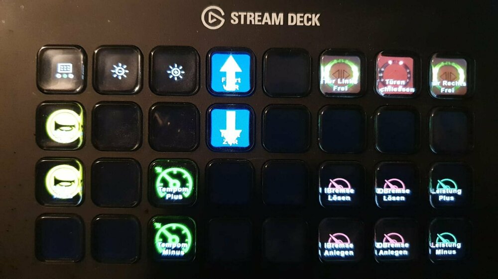 Hallo ihr lieben, für alle die ein Streamdeck haben hier nun die erste Auflage meines Pfrofils. Als erstes gibt es die ED-250 und die EU-07. Weitere folgen. Die Bilder in den Tasten stammen von Simrail. Das Profil ist Kostenlos und darf auch nicht weiter Verkauft werden. Es ist rein ein Projekt für die Community hier. Alle Rechte an den Bildern liegen bei Play Way und Simrail. ED-250 https://filehorst.de/download.php?file=ernGenEr EU-07 https://filehorst.de/download.php?file=egllisDH PS. Die Wichtigesten Tasten sind alle umgesetzt. Andere Bedienelemente die noch nicht mit Tasten belegt werden können müssen von Hand geschalten werden. Ist nur für das Streamdeck XL. Bitte in den EIinstellungen von Simrail die Zuorfnung für den Tempomat zuordnen und für die Fahrtrichtung. Anpassung: Tempomat Schneller: K. Tempomat Langsamer: , Fahrtrichtung: Vor Pfeiltaste nach oben, Zurück Pfeil nach unten. (Pfeile zwischen Tastatur und Nummerblock) LG Chris
