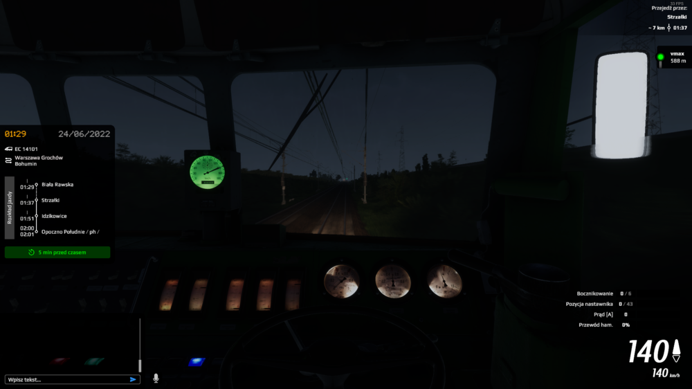 Wakacyjny TLK złapał poważną awarie lokomotywy na swojej stacji początkowej. Masz za zadanie dowieźć pasażerów bez dodatkowych turbulencji podstawioną ET25 do reszty składu . PL 🇵🇱 Opis scenariusza: Start 8:49 Czas trwania: 3h45min Pora: Lato☀️ Dodatkowe postoje na przystankach osobowych na szlaku Ząbkowice-Zawiercie. Rozkaz "O" w zał. Skład 11 wagonowy Instalacja: Paczke .rar wypakuj w Steam\steamapps\common\SimRail. I to tyle. Nie ma potrzeby szukania folderu /Sceneries, ścieżka jest tak zaprogramowana, by sama dodawała pliki w odpowiednie foldery. Uwaga: Lokomotywa ciągnięta (EU07) musi mieć załączoną baterie, wyluzowany hamulec postojowy oraz hebel "Tryb jazdy ciągnionej" musi być skierowany w dół. Przełącznik znajduje się za fotelem maszynisty. Wersja scenariusza: v1.05 Changelog: --------------------------------------------- Scenariusz aktualny od dnia 05/04/24. --------------------------------------------- EN 🇬🇧 🇺🇸 Scenario description: Start 8:49 AM Duration: 3h45min Season: Summer☀️ Additional stops at passenger stops on the Ząbkowice-Zawiercie route. 11-car passenger train Instalation: Unzip scenario in Steam\steamapps\common\SimRail. That's all. There's no need to look for /Sceneries folder, the path is programmed to automatically add files to the appropriate folders. Warning: Towed locomotive (EU07) must have batteries connected, parking brake released and the "Passive driven mode" lever must be directed downwards. Switch is located behind the driver's seat. Scenario version: v1.05 Changelog: ------------------------------------------- Scenario is up-to-date since 05/04/24. ------------------------------------------- TLK 45070 v1.05.rar
