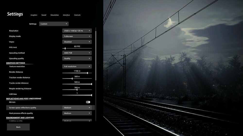 The video. (By the way, the ambient reflection looks great) SimRail - The Railway Simulator Playtest_2022.12.10-21.06.mp4 The graphic settings. The other options are at default (medium). The DxDiag file. DxDiag.txt