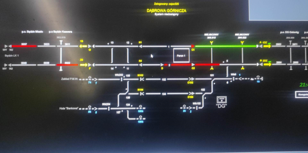 Dołączyłem do stacji i zastałem taki widok. Urządzenia wykazują zajętość za semaforem D wyszedłem na teren, pociągu nie stwierdziłem w czasie walki z urządzeniami i chęcią puszczenia już po torze lewym pociągu, wywaliło mnie z gry "połączenie z serwerem zostało utracone z nieznanego powodu".