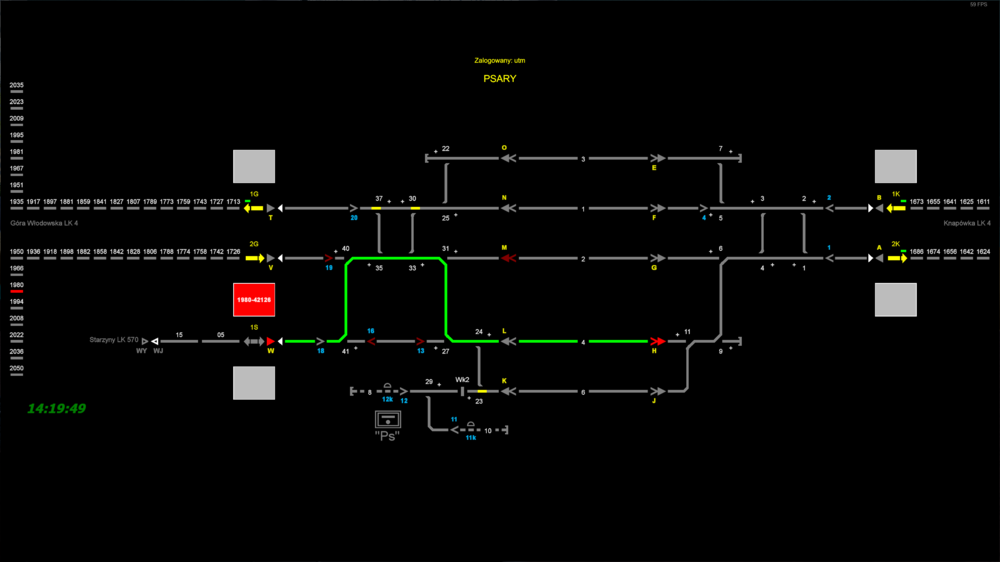 11.12.2022 g. 14:00 Small update of control panels for all stations. Now in order to use signals E1,E2,E4,E6,E8,E10 in the station Bedzin signals C or D depends of the direction must be used first. Correction of the display of the next station in the EDR for some trains at the stations Psary,Knap贸wka,艁azy 艁C ------------------------------------------------------------------------------------------------------------------------------ Ma艂a aktualizacja pulpit贸w sterowniczych dla wszystkich stacji. Teraz aby u偶y膰 semafor贸w drogowskazowych E1,E2,E4,E6,E8,E10 w B臋dzinie nale偶y wcze艣niej wy艣wietli膰 wyjazd na semaforze C lub D. Poprawka wy艣wietlania kolejnej stacji w EDR dla niekt贸rych poci膮g贸w na stacjach Psary,Knap贸wka,艁azy 艁C