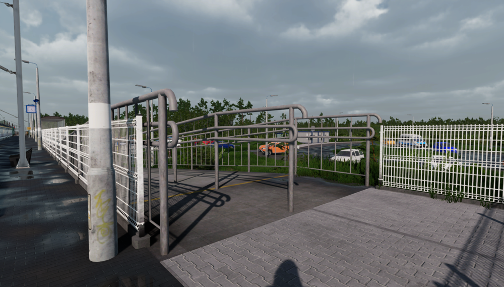 15. W przejściach nad peronami znajduje się roślinność i błędy tekstur, które widoczne są nad poręczami schodów: Rośliny w suficie i przy tylnej ścianie na suficie niebieski prostokąt: Tutaj oprócz roślinności znalazły się tak jak na pierwszym screenie prawdopodobnie błędy z teksturami na spodzie ścian widoczne nad poręczami: