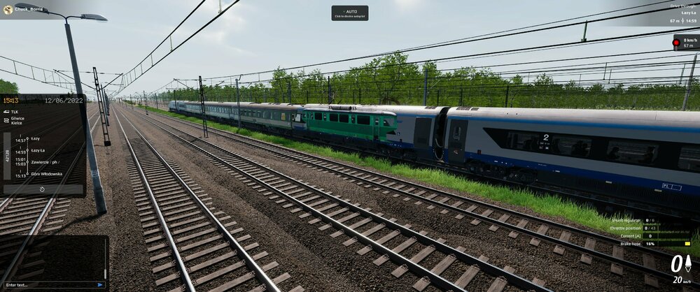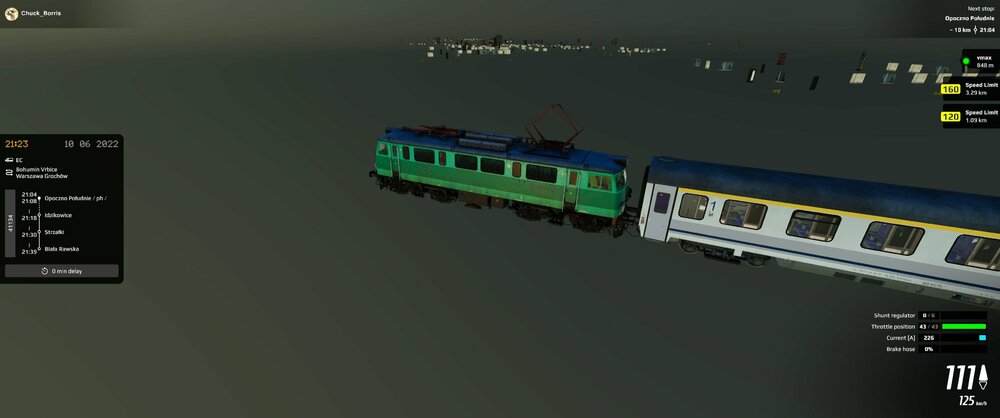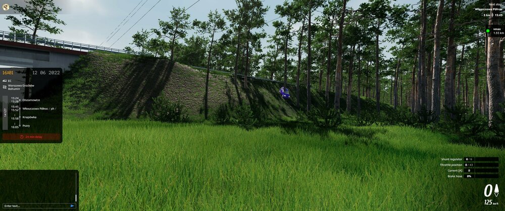 Some other bugs that I came across so far: 1. Sometimes, I can´t tell yet under what circumstances and how to replicate it, the text pop-up that appears when you put the mouse cursor over a lever or button is not showing up. I usually make it re-appear by going outside (camera 3) and then coming back again but during movement this is not possible and unless one knows all buttons by heart it is impossible to know what to press or in what state a button/level is. 2. Pneumatic brake lever on EU07 locomotive freezes sometimes when changing positions using the 9 and 3 keys. 3. The windscreen of the EU07 locomotive does not show rain drops when it rains. Only the lateral windows show the rain. Also, when it rains and I go outside the locomotive, there is no rain. I can only see it on the lateral windows. It produces no sound either. 4. Opening the lateral window in the EU07 makes no difference in sound level or noise compared to when it is closed. I was expecting it to block some of the outside noise when closed but there is no difference currently. 5. In the screenshots added in the previous post, that train formation does not allow me to open or close doors at stations. I tried all the keys allocated to door controls, none have effect. They do work on the EMU train without any problem but not on passenger coaches pulled by the EU07 locomotive. 6. During movement, the EU07 has a constant side to side movement at higher speeds. This is a bit motion sickness inducing a besides this, it is a loop that seems tied to speed rather than track quality/condition. By comparison, none of the coaches that again you can see in the screenshots in my previous post, have any sway or movement at all. They are completely fixed regardless of speed. 7. Track noise seems to be missing. Except points and some curves the rest is completely silent. I don´t know how the track is in reality, I simply feel that it is too quiet and lacks track joints sounds completely. I don´t think it´s all welded, is it? 8. I can´t inside the train through the passenger doors from the platform. There seems to be an invisible wall. I don´t know if this is intended. The passengers that were waiting right in front of the doors were not getting in either, they were stuck there. In fact, no one on the platform was moving except me. 9. The lighting and shadows don´t seem to work well. There are big forests that cast no shadows at all and all trees are lit identically even the ones that are in the middle of the forest and should be in shade from the others. I play with everything on maximum, DLSS quality, RTX 3070 OC. Inside the EU07 cab, I see the sun reflection on the right window but if I look to the left I can´t see the sun so it seems that the loco frame is not a solid object, the light meets the surface of the window and generates the reflection. Perhaps the loco model needs to be checked for materials.