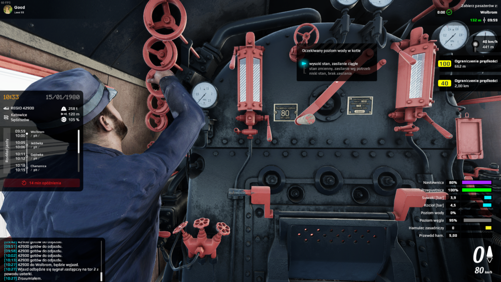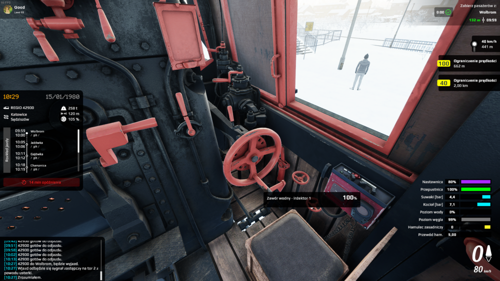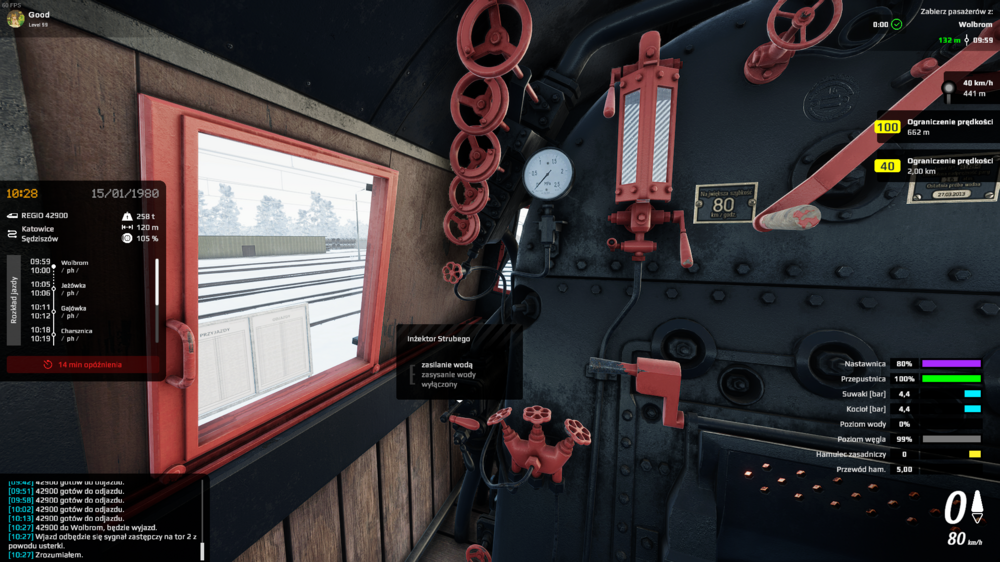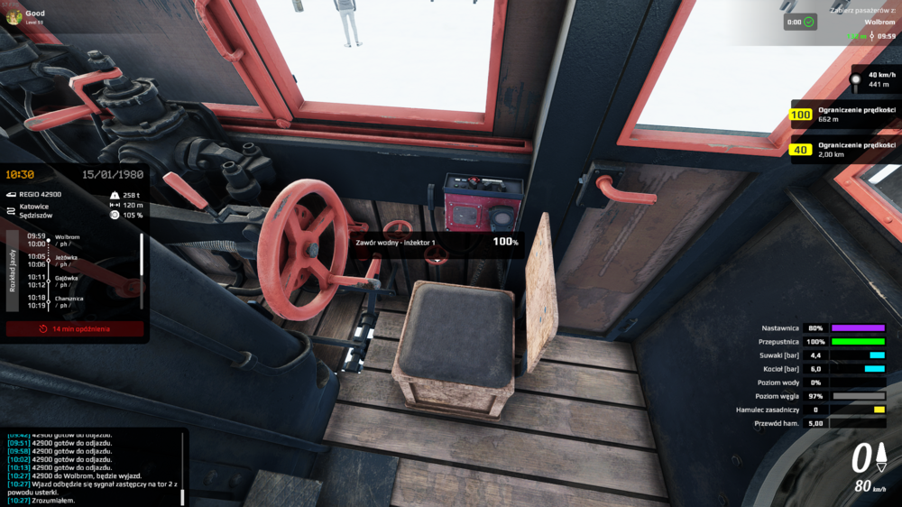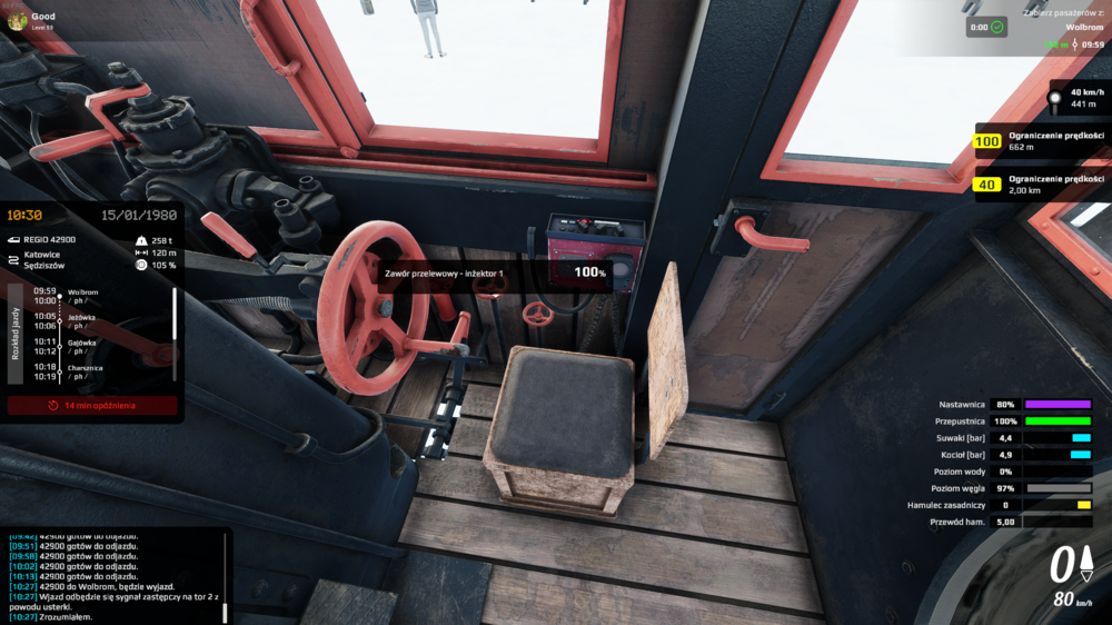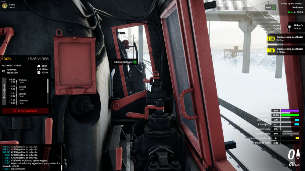 Więc, zaczęło się od tego, że po ustawieniu w parowozie Ty2 "Wysoki stan, zasilanie ciągłe" Pomocnik maszynisty, zamiast dolewać wody(było 2%, potem 0%), zaczął ją zasysać, więc uruchomiłem inżektory po swojej stronie(maszynisty), dalej nic, po wyłączeniu automatycznego Palacza i samemu uruchomienia każdego inżektora, oraz dania Inżektora Strubego na zasilanie wodą i odczekaniu 20 minut, przy każdym inżektorze włączonym, dalej było 0% napełnienia wody. Po czym po wejściu kamerą do Tendra, gra zatrzymała się w takim stanie, że wszystko zatrzymało się w miejscu i tylko przycisk "espace" działał, i były dźwięki zapętlone. SimRail_log_2024-12-15_13-46-00.txt
