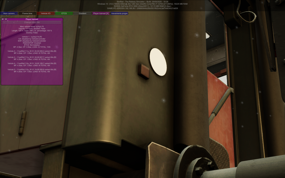 I found that with some of the carriages, the lamp for the end of train signal is missing / all plane white. All the carriages in the Ty2 Katowice to Sedziszow have this problem. In the Loco Depot, these series of carriages have this problem: 110A, 111A and 112A (all liveries/variants). When the end of train signal is lit/red, everything is normal. Build: 30-05-2025 - 18:25.