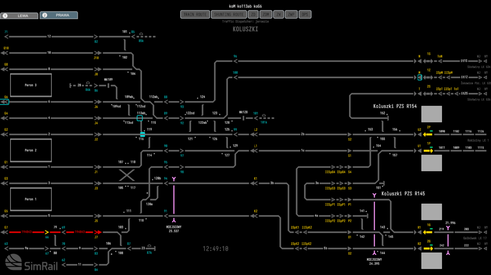 I discovered that you can not set a route from Koluski signal M, to track 6, signal G6. I wanted to set a specific route trough the switches, via switch 115, and 113ab. But this variant is not avialable. Afther clicking switch 113ab you are forced to click the unwated switch 116 (picture included). Setting the desired route the other way from signal J4 to Zakowice is possible (pichture provided too). Its only a minor issue since other routes are avialeble.