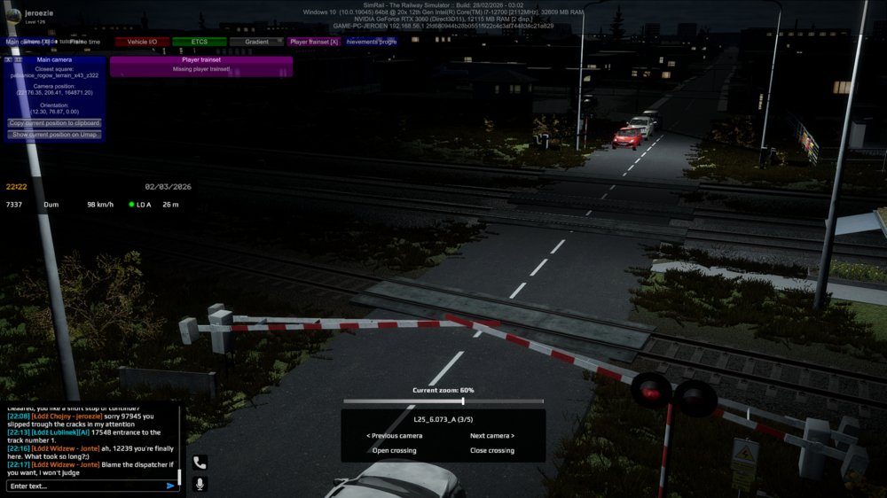 When I send a train, from signal B towards signal M, the railway crossing seems needing to be closed. Its probably the overshoot / safety overlap distance. But this is not indicated using the yellow line on the dispatchers screen, as it usually is on other dispatcher posts. Build 26/02/2026 - 07:11.