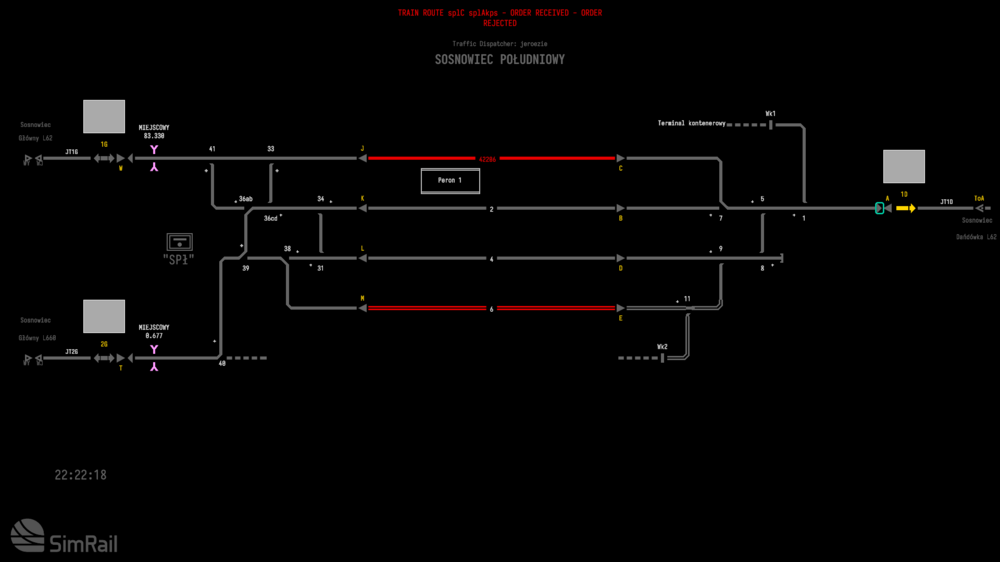 14. Multiple players (myself included) and sometimes even the AI had trouble setting up train routes from Sosnowiec Południowy towards Sosnowiec Dańdówka. The train route from track 1, 2 or 3 (signals C, B and D) could not be set up towards Dańdówka, the Dańdówka dispatcher send line clear message and the lineblock was set up currently). When setting up the route, the computer seems to accept the route, it lines up the switches as expected, then nothing happens for a bit and later it will display a order rejected message. Full details here: https://discord.com/channels/1067073812560093264/1329535955752845356
