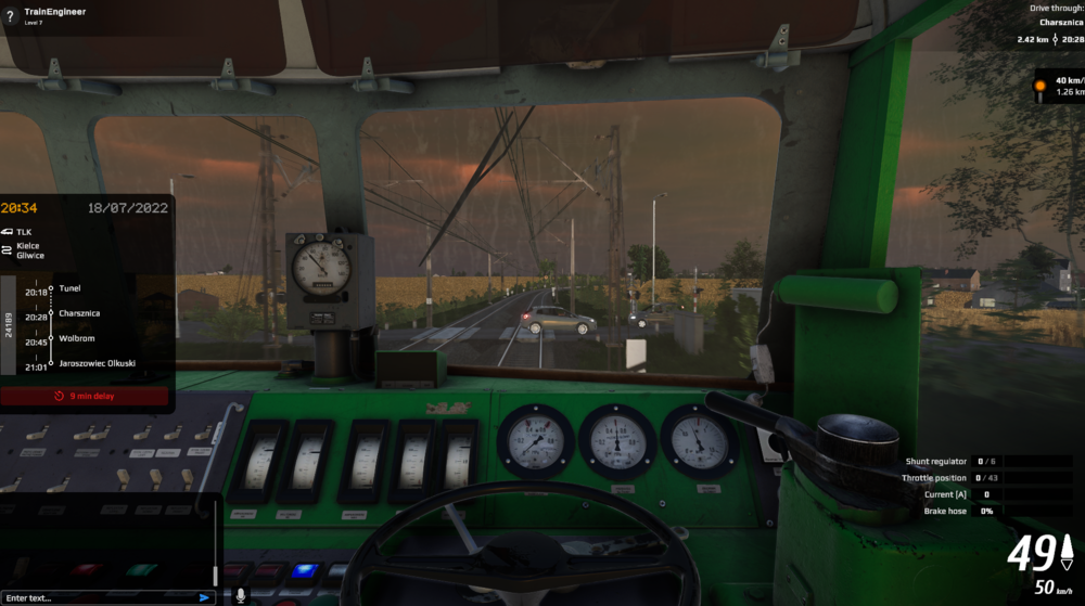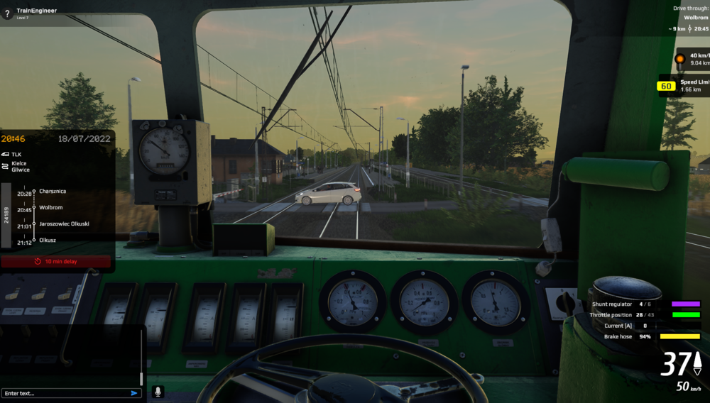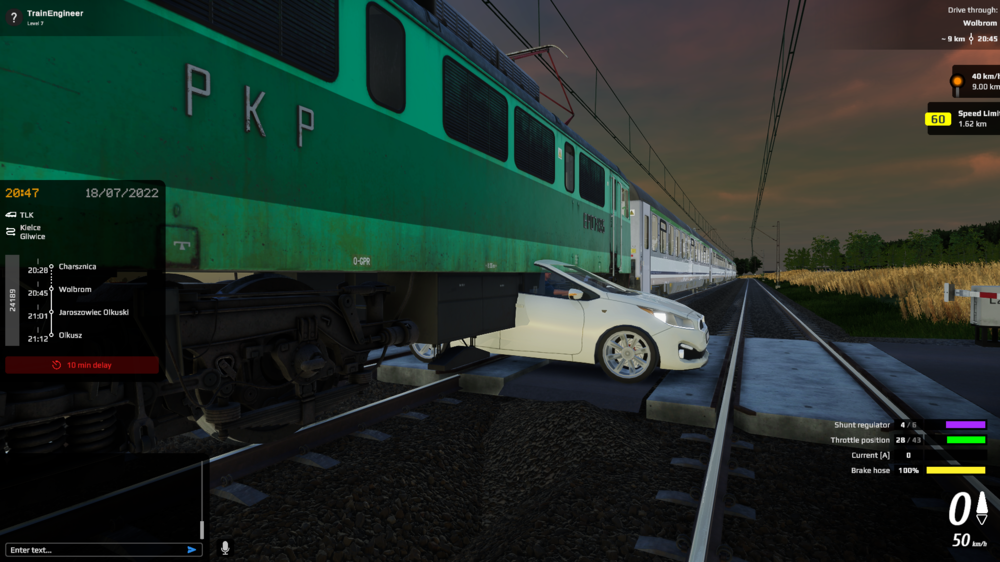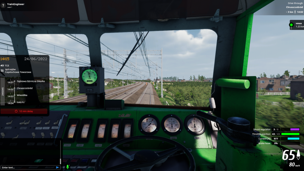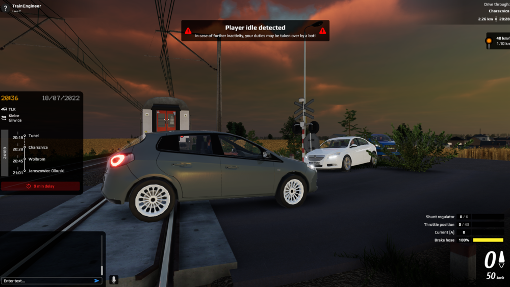 note that the chat window loses focus, after pressing enter. Hard one: if user continues to type next sentence: user is suddenly operating cab items. if user activates chat window again, he's unable to press space bar for vigilance control.... if train engineer walks outside and is chatting, and presses space bar, he's also jumping...