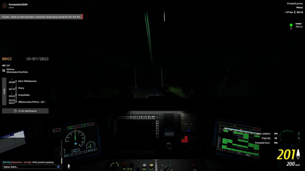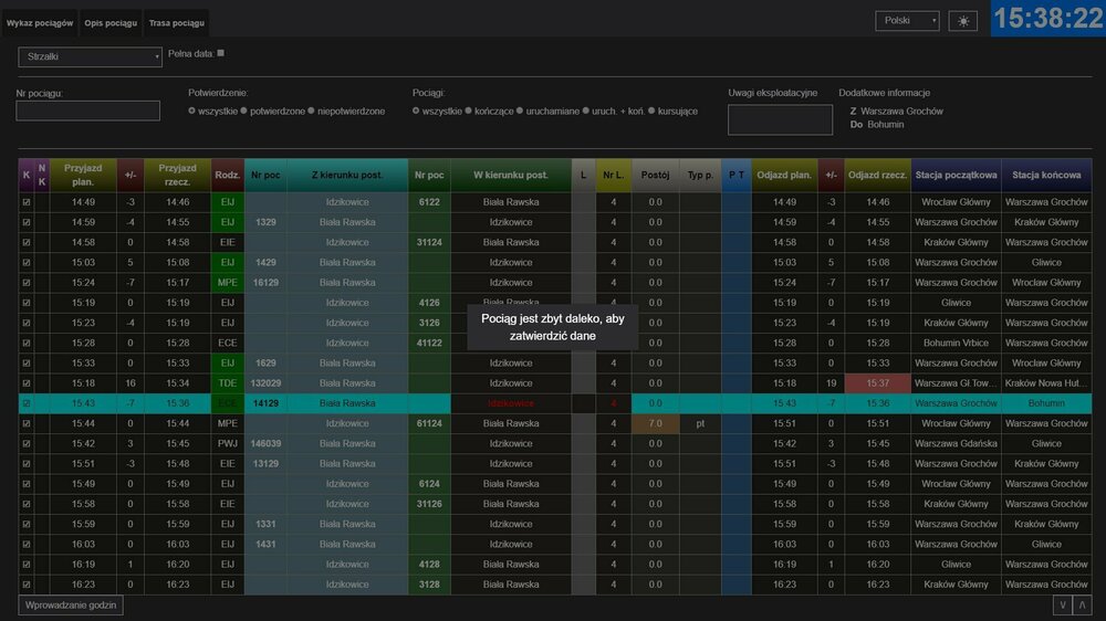 Przy odjazdach z przystanków lub ze stacji przykładowo wjazd do Dąbrowy Górniczej jest 14:39 odjazd 14:40 i gra trzyma nas do 14:40:58 sekund co czasami skutkuje opóźnienia na następnych postojach