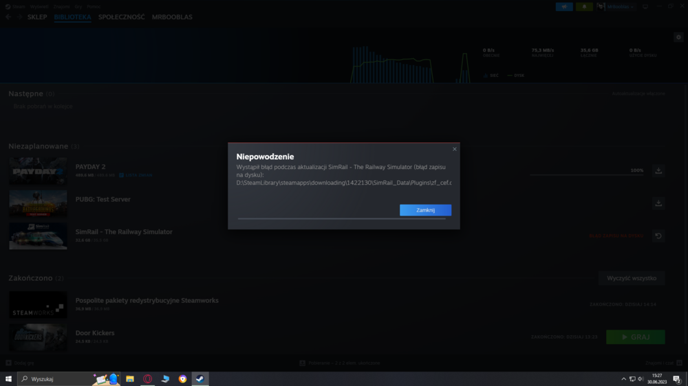 1. Witam, po reinstalacji gry nie mogę jej do końca pobrać. Pobieranie przebiega pomyślnie do pewnego momentu. Próbowałem zainstalować grę na innych dyskach lecz błąd jest taki sam.