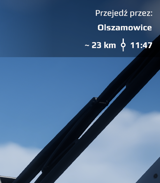 Zależy mi na pełnej immersji – korzystam ze słupków hektometrowych i rozkładu, więc ta wisząca "podpowiadajka" z dystansem psuje mi symulację. Wcześniej ten widget dawał się wyłączyć (reagował na skrót lub ustawienia), a teraz jest widoczny na stałe.