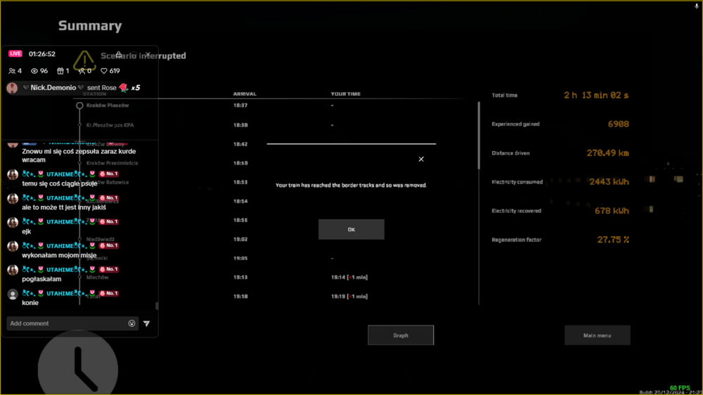 Odpalalem gre na 3 roznych uzadzeniach i zawsze mam ten sam problem. Mnie zazwyczaj wywala na odcinku miedzy Korytowem a Szeligami (niezaleznie czy jade od Korytowa czy od Szelig). Mam tak zarowno na multi jak i na singlu (nagranie jest z MP dlatego zamieszczam to zgloszenie w zakladce multiplayer) a zaczelo sie to wszystko po wyjsciu DLC Lodz-Warszawa. Tak jak jeden z uzytkownikow zaproponowal, probowalem bawic sie ustawieniami graficznymi ale nic sie nie uleglo poprawie. Nie mam tego problemu na trasie Krakow-Sedziszow ani na trasie Sedziszow-Katowice wiec wina musi lezec po stronie wczytywania warszawy albo cos w tym stylu.