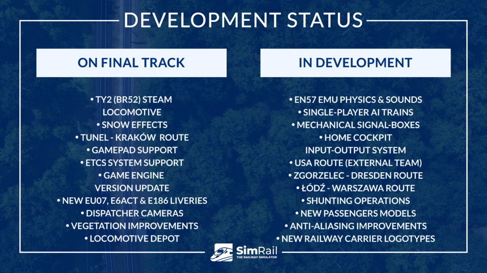 07.04.2023 [PL] Sneek Peak Update 7.4.2023: Dodano nowe zdjęcia dla taboru EN57: Tutaj [ENG] Sneek Peak Update 7.4.2023: New pictures added for train EN57: Here [DE] Sneek Peak Update 7.4.2023: Neue Bilder für den Triebwagen EN57 hinzugefügt: Hier | 29.04.2023 [PL] Sneek Peak Update 29.4.2023: Dodane dwa kolejne zdjęcia parowozu TY2: Tutaj [ENG] Sneek Peak Update 29.4.2023: Add two new pictures for steam locomotive TY2: Here [DE] Sneek Peak Update 29.4.2023: Zwei weitere Bilder der Dampflock TY2 hinzugefügt: Hier | 30.04.2023 [PL] Sneek Peak Update 30.4.2023: Dodane nowe zdjęcie dla taboru EN57: Tutaj [ENG] Sneek Peak Update 30.4.2023: New picture added for train EN57: Here [DE] Sneek Peak Update 30.4.2023: Neues Bild für den Triebwagen EN57 hinzugefügt: Hier | 12.05.2023 [PL] Sneek Peak Update 12.5.2023: Dodane dwa nowe zdjęcia dla taboru EN57: Tutaj [ENG] Sneek Peak Update 12.5.2023: Added two new pircutes for train EN57: Here [DE] Sneek Peak Update 12.5.2023: Zwei weitere Bilder für den Triebwagen EN57 hinzugefügt: Hier || 19.05.2023 [PL] Sneek Peak Update 12.5.2023: Dodano EMD SD70ACU Canadian Pacific Railway: Tutaj [ENG] Sneek Peak Update 12.5.2023: Added EMD SD70ACU Canadian Pacific Railway: Here [DE] Sneek Peak Update 12.5.2023: EMD SD70ACU Canadian Pacific Railway hinzugefügt: Hier -