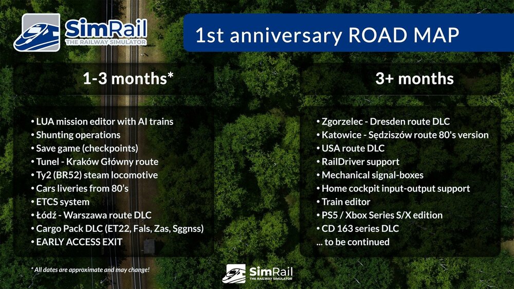 Today we celebrate the first anniversary of the SimRail relase❗️ Thank you for thousands of hours spent together and millions of kilometers traveled. On this occasion, we have a road map of what we have prepared for you in the coming months.